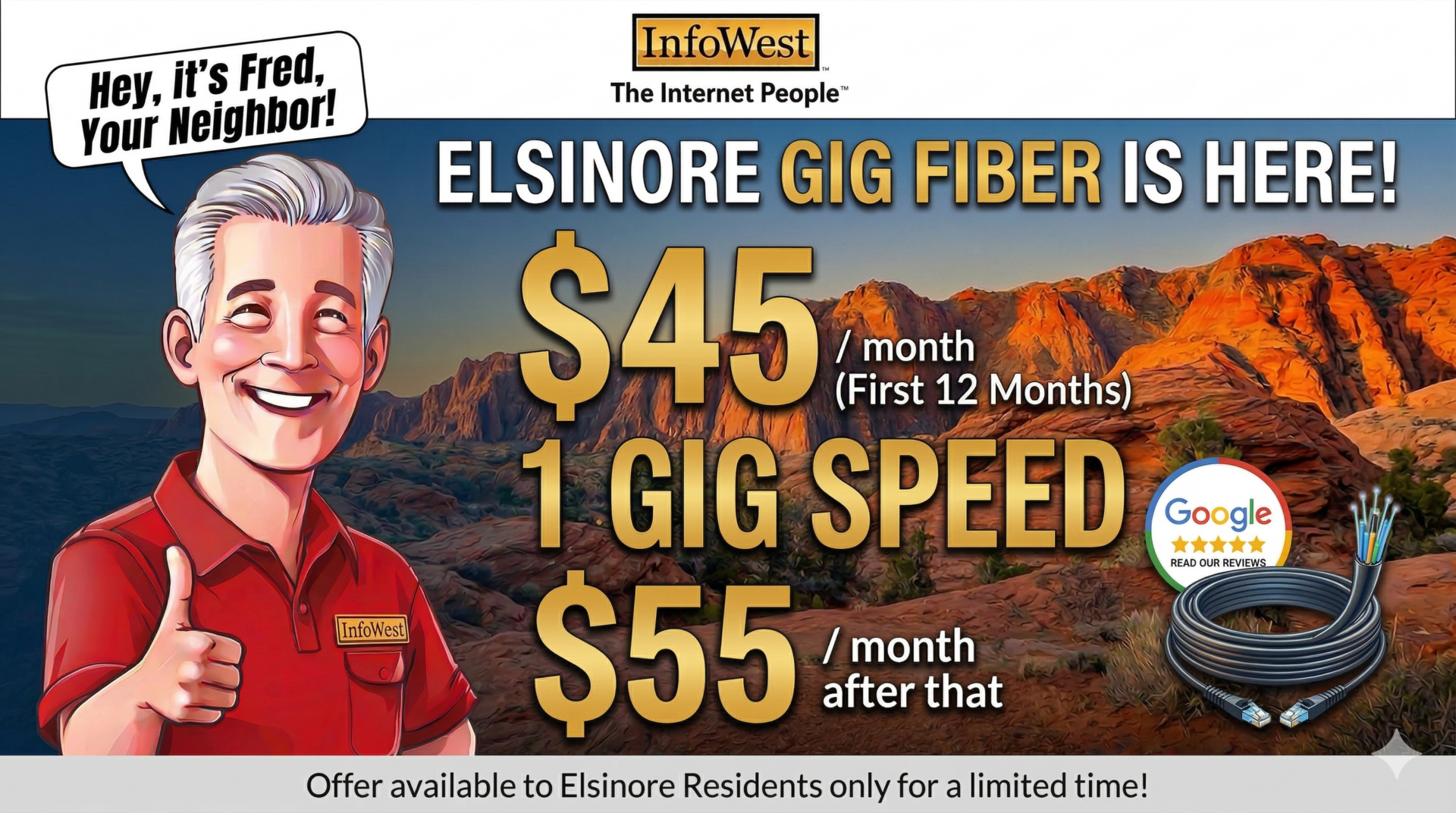 Elsinore Residents! InfoWest is in your town with Fiber, and we’re here to get you up and running at faster speeds than you’ve ever experienced! We love communities like Elsinore and all of Sevier County, and we are beyond excited to serve this area with reliable, high-speed fiber internet.